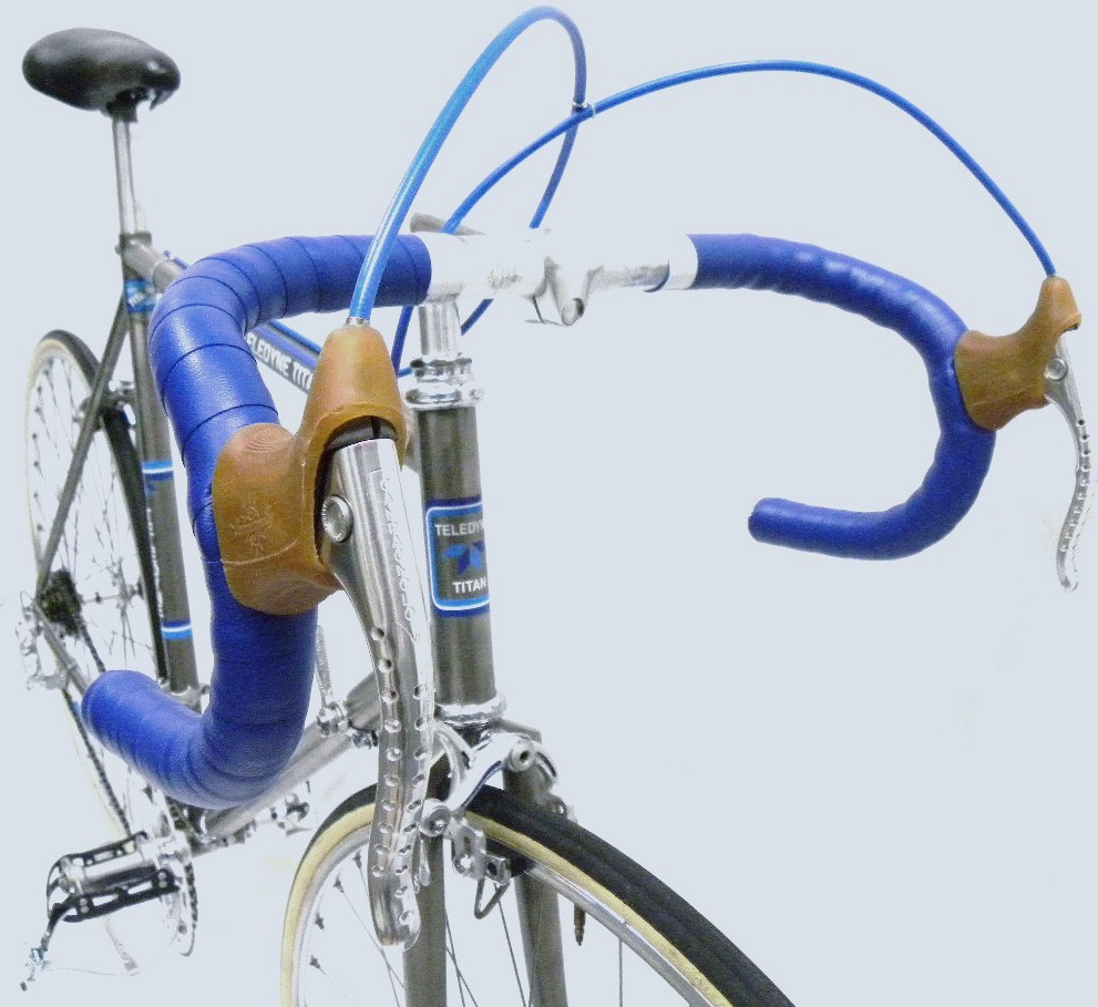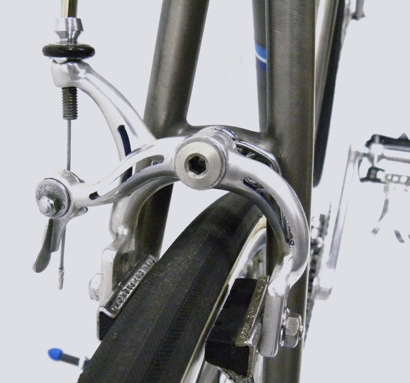 - The Story – Token titanium bike. Acquired naked frame and fork from eBay. During build up the steerer tube was discovered to be cracked. It was expertly repaired by Chris Dekerf of Dekerf Cycles in Vancouver. The tubes are larger than the contemporary standards and provisions were made on the down-tube to allow the mounting of standard parts. Standard top-tube cable guides, however, require longer bolts which by itself was an interesting exercise. Replacement decals came from Dale Brown of Cycles deOro – twice!