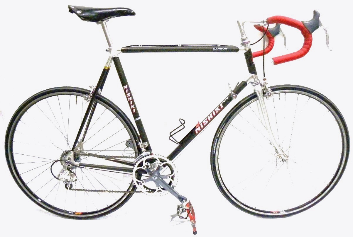 Nishiki – Carbon Posted on March 7, 2014March 27, 2019 by Bon-vivant The Bike – Mid 80’s Alan built Nishiki badged carbon bike. The Story – Token carbon bike. Acquired through eBay in pretty good condition. Suntour Superbe Pro Group with index shifting. The Cool Factor – Very business like with a clean look to it. Share this: Share on X (Opens in new window) X Share on Facebook (Opens in new window) Facebook Like Loading... Related