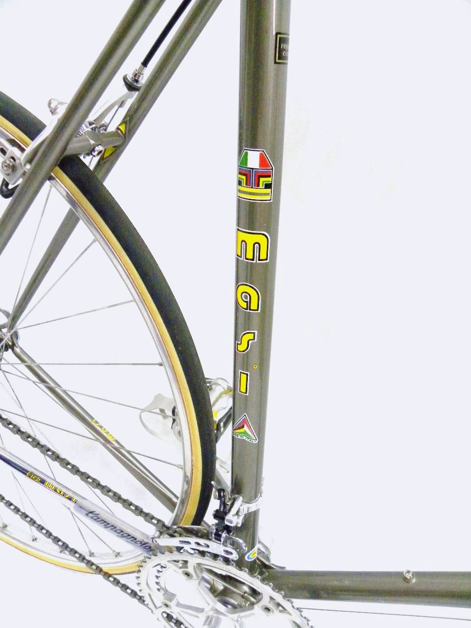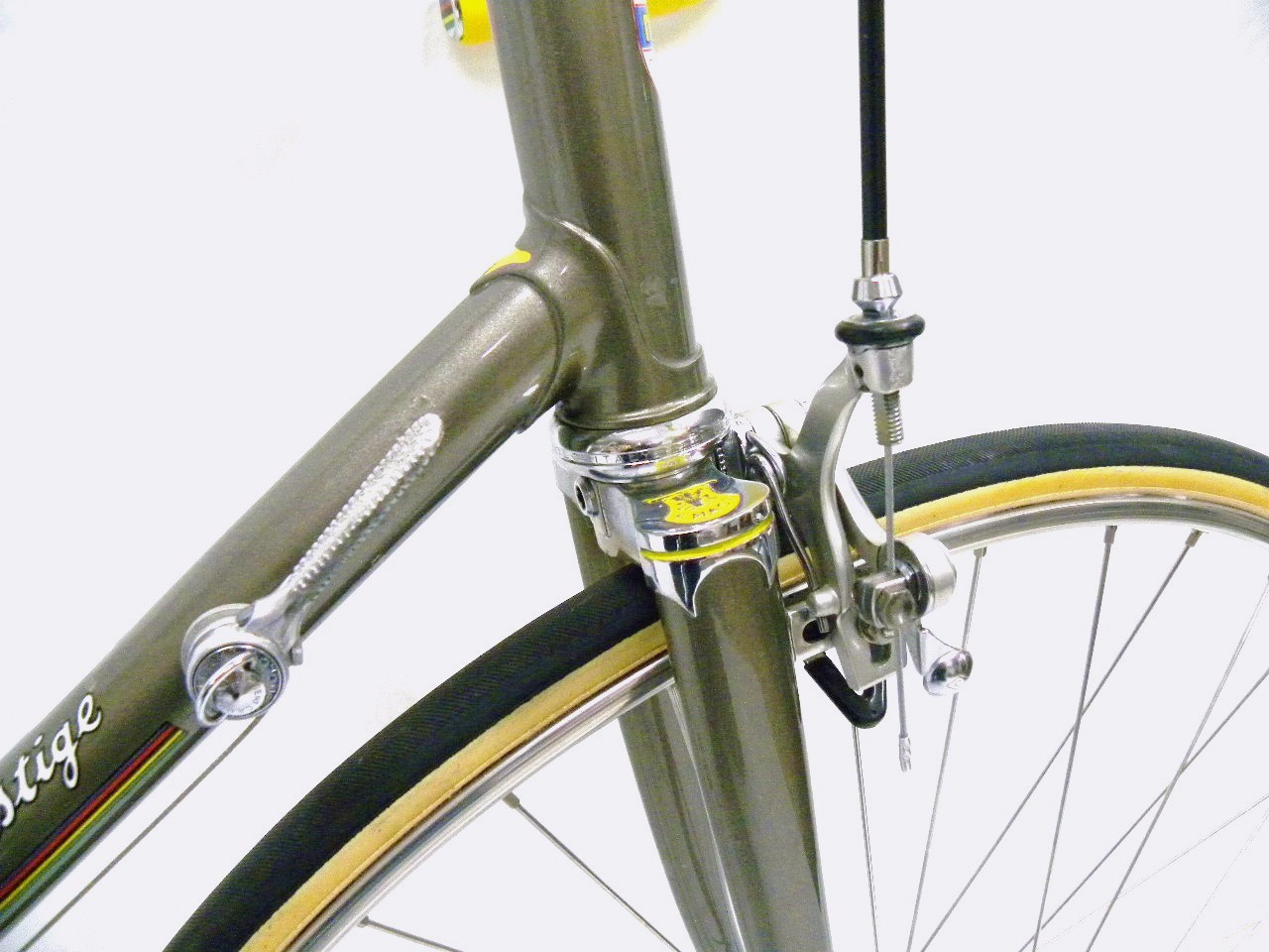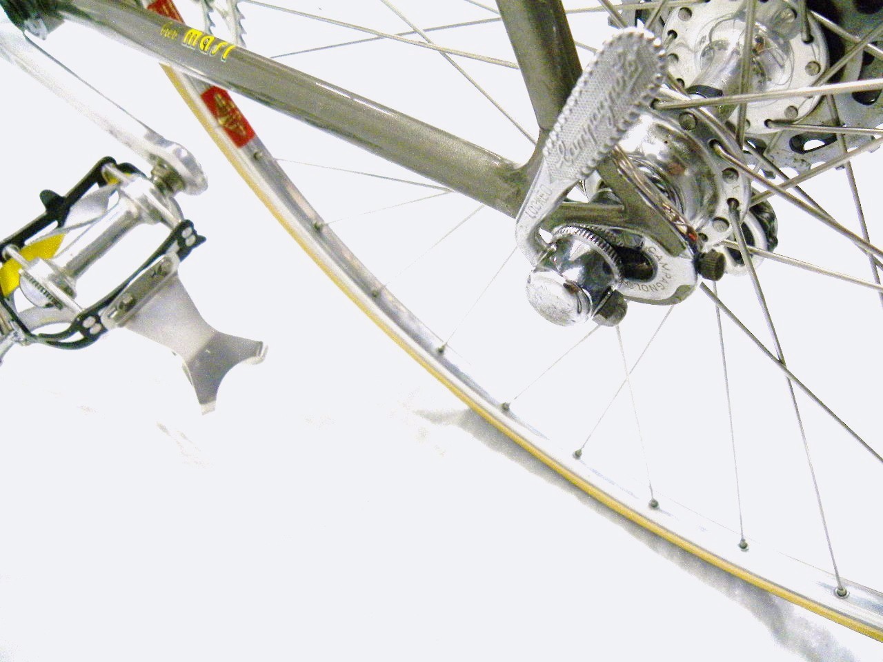 - The Story – I actively searched for a Masi Prestige for a very long time. This frame and fork was acquired from eBay. It has a nice metallic charcoal paint job with a golden hue to it. When I finally got it, I was so thrilled that I put all the best parts from my stash on it like NOS Super Leggera pedals with ti spindles, ti bolt SR derailleur, brand new rims laced to NOS hubs, etc.