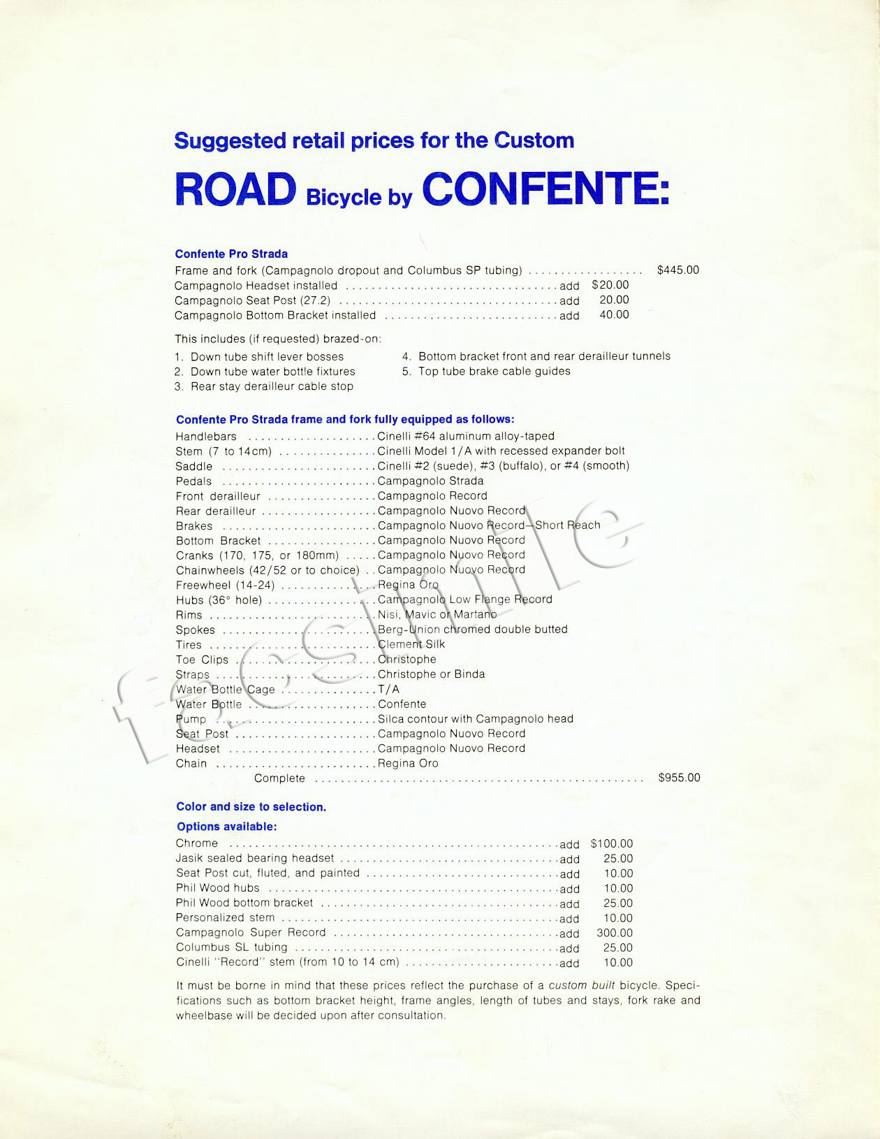 - The Story – Peter Gilbert turned me on to this one. Acquired from American cycling legend Jock Boyer. I went to his shop on the Monterey Peninsular to pick up the bike and saw all the other cool bikes he had including a number of other Confentes and bikes that Mario built for him. Notice the word ‘Strada’ missing on both sides of the chain-stay.