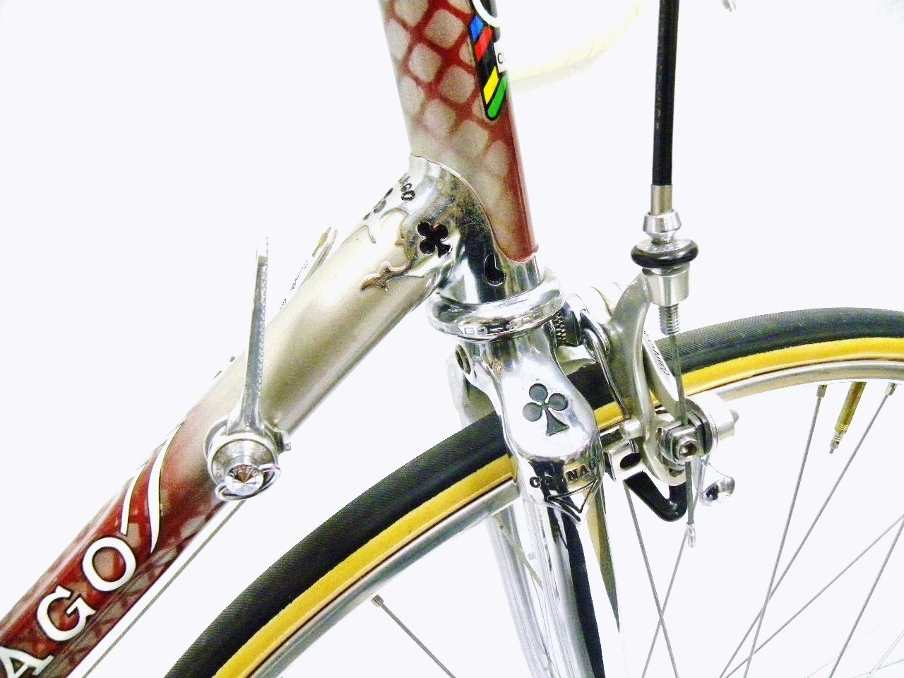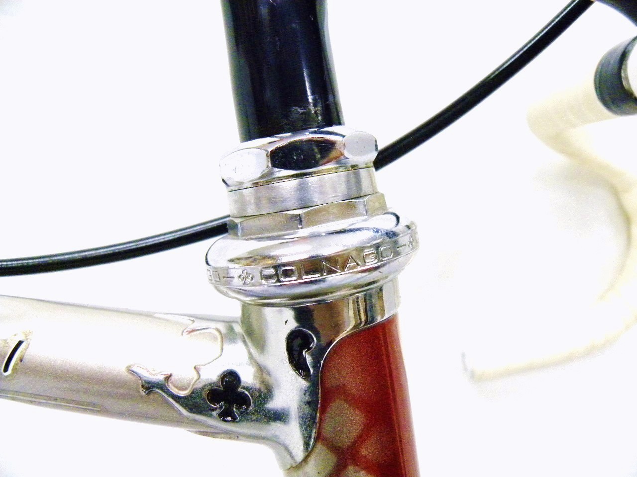 - The Story – I acquired the 30th Anniversary Group about 15 years ago. It came on a lowly Super but looked virtually new. The cut out of the clover and the gold inlay look so crude as if someone did it with a Dremal tool. I had been very actively looking for a Arabesque or Regal for over 10 years until I finally came upon this one. Since the Arabesque lugs were introduced by Colnago in 1984 to commemorate its 30th year in business, the bike and the group should be together. Three of my Colnagos have crimped tubings and they are all different. This one has the Gilco tubes which has a hexagonal profile with 6 groves around the tubing.