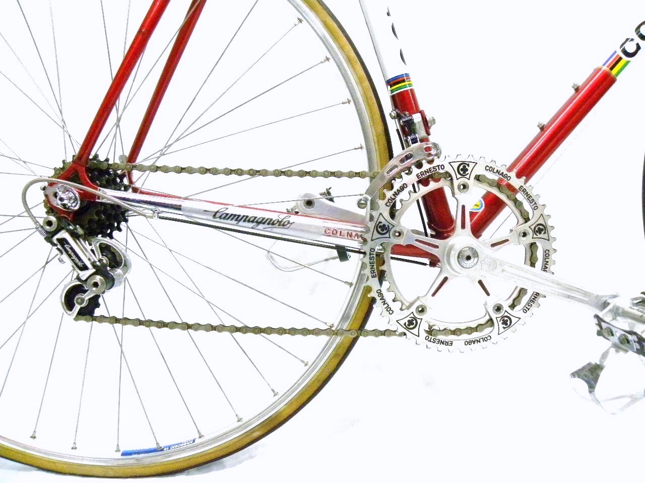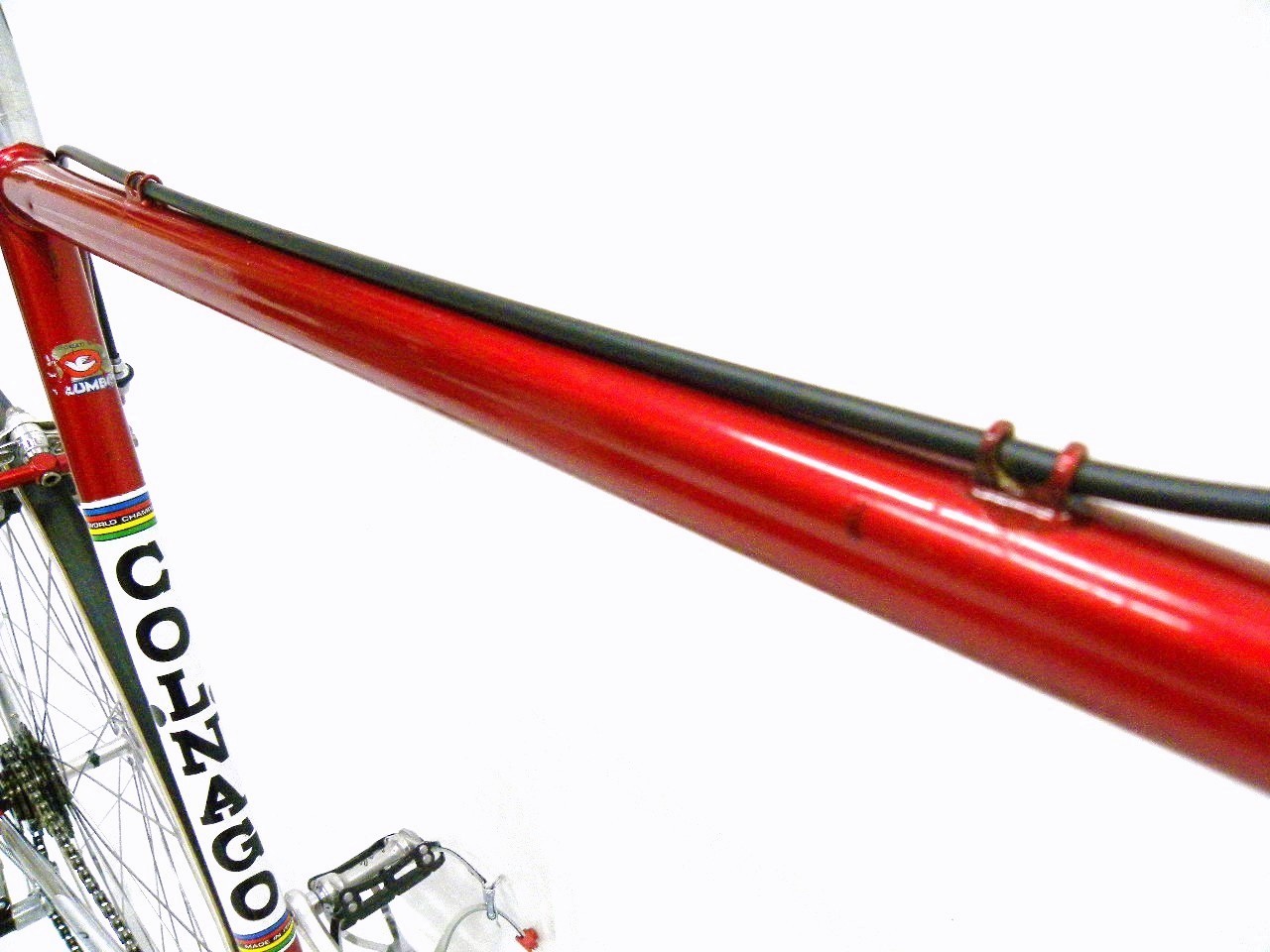 - The Story – Acquired from Italy mostly complete. Three of my Colnagos have crimped tubings and this one is the most crude. It has a single indented groove on each side of the tubing and looked like someone crimped it in a vise.