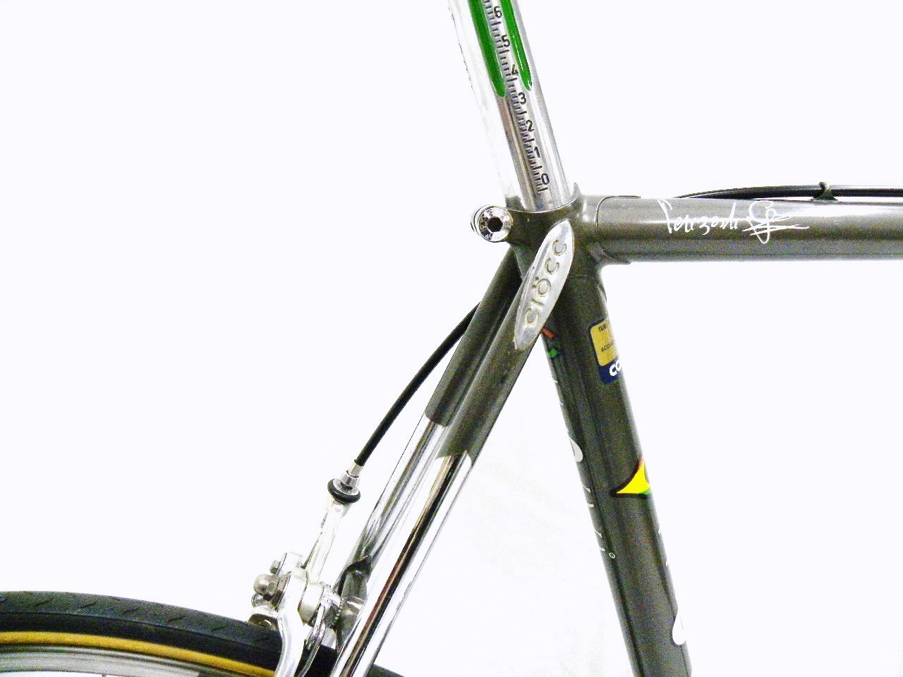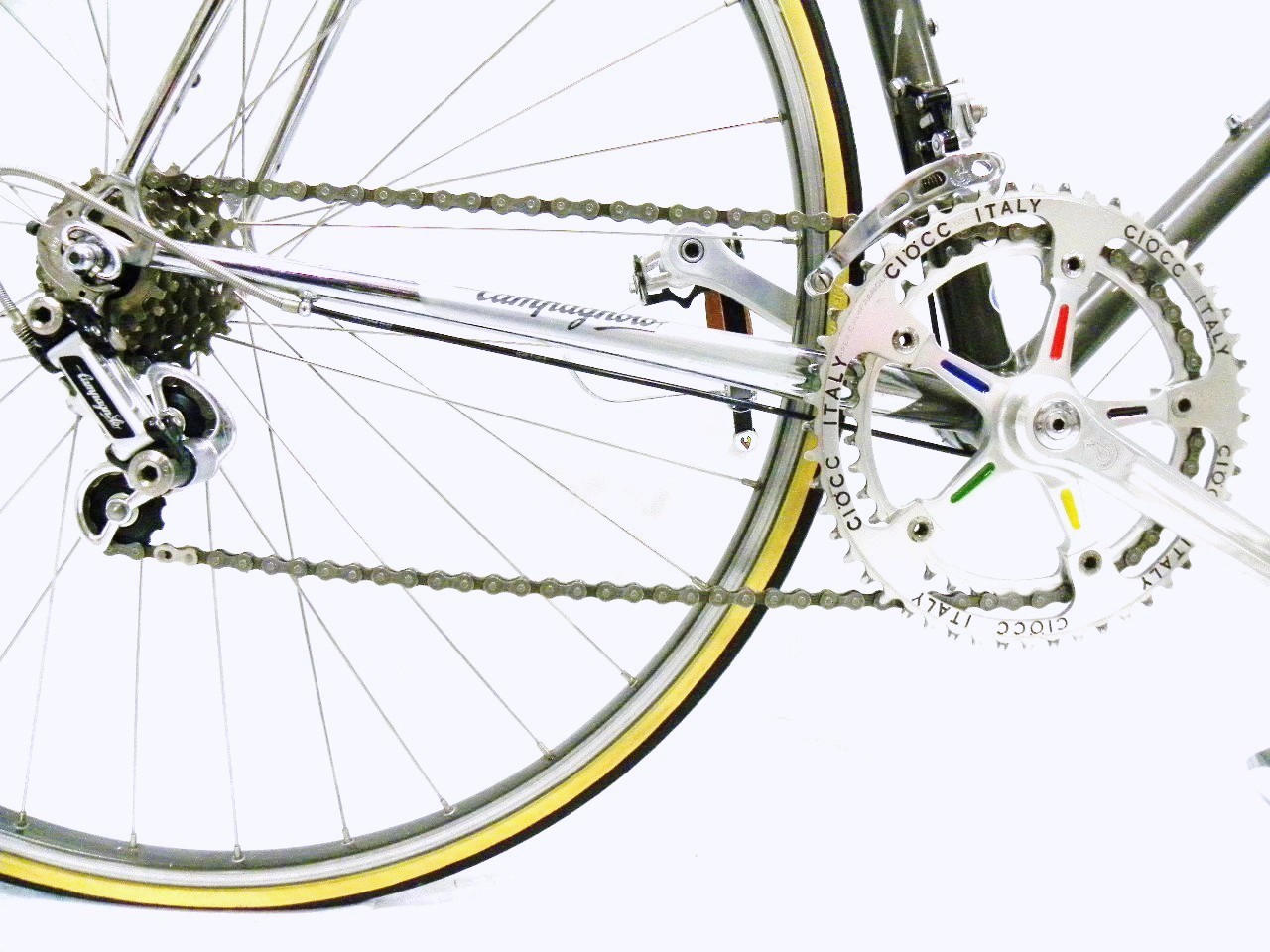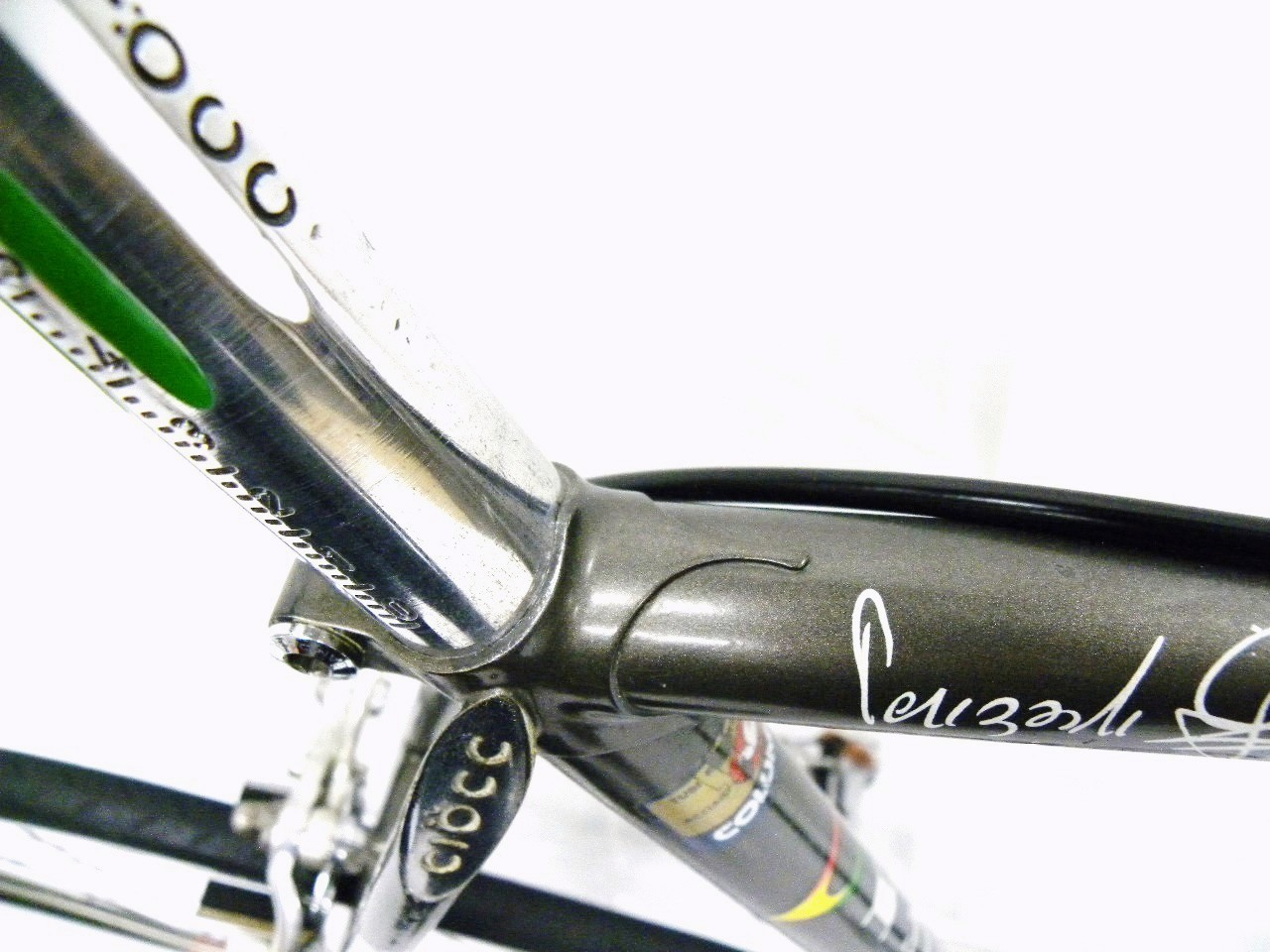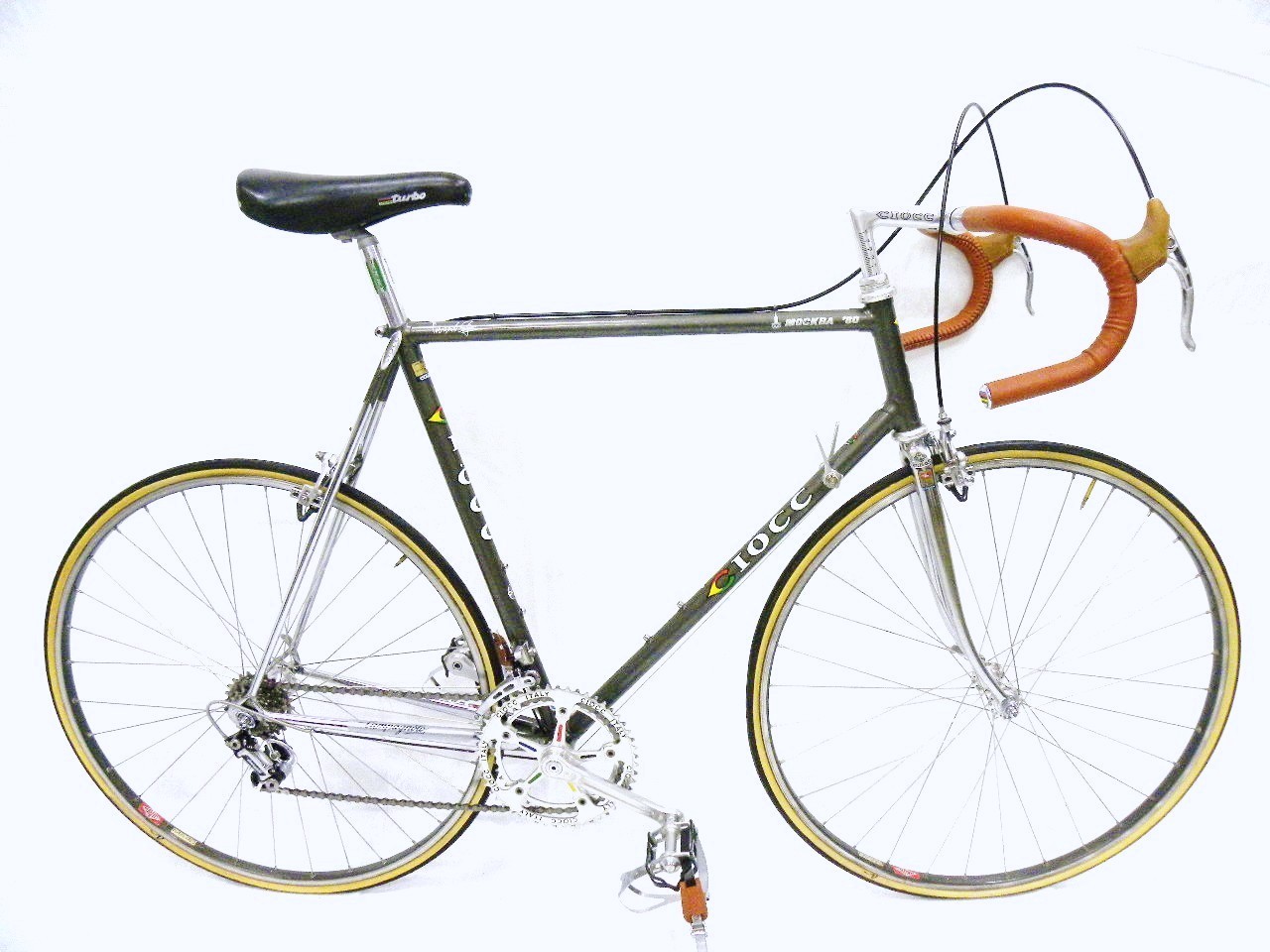 1. I’ve got a Ciocc Mockba 80 too, but it must be an older version because it’s made with all white decals and the components weren’t labeled with the brand name; it was just the original Brev. Campagnolo parts. (90 percent of the bike is origional.) the serial number is 54.