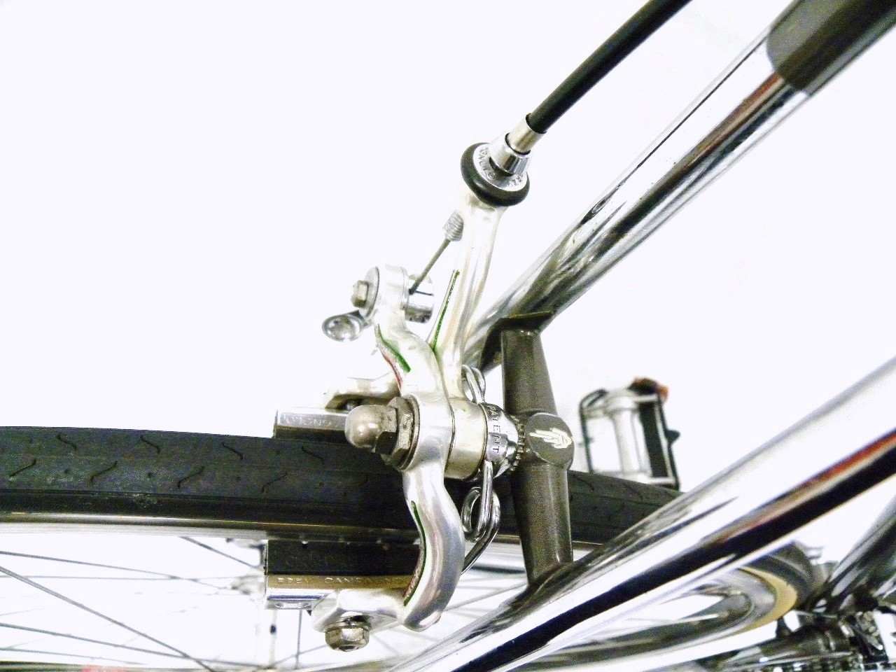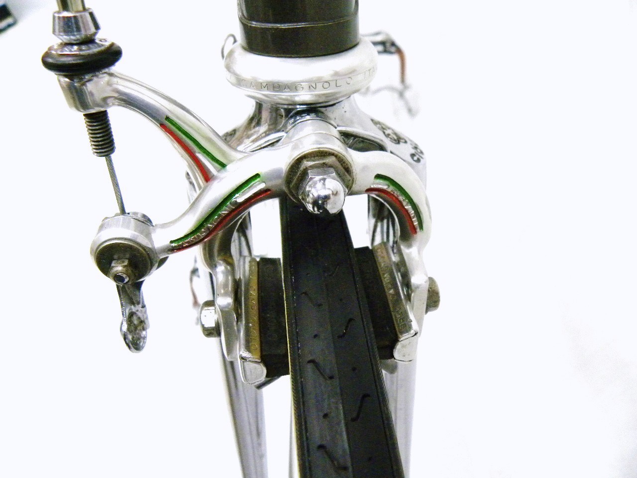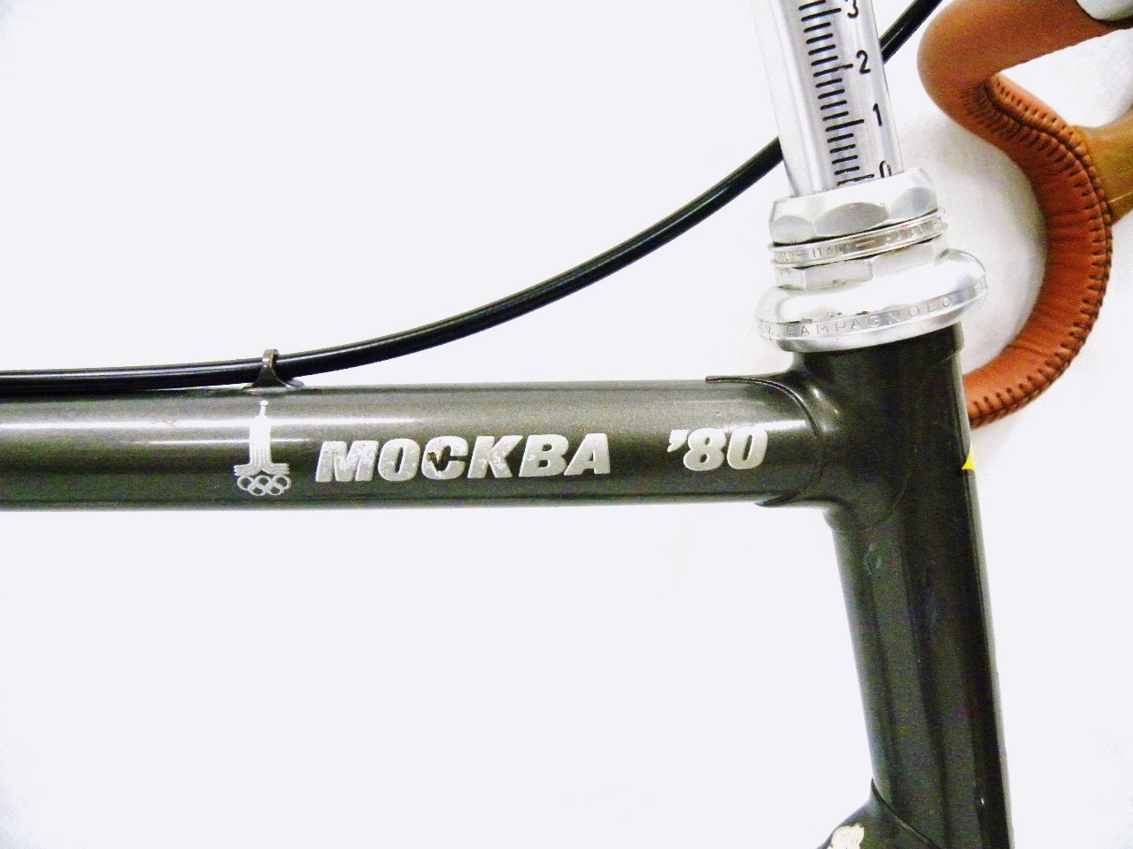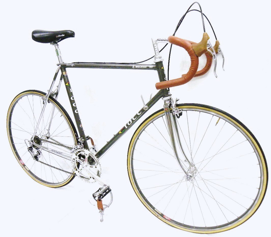 • The Story – Limited edition bike built by Ciocc to celebrate its success in the 1980 Moscow Olympics (A Polish rider won a silver medal in the road race on a Ciocc).  Acquired through eBay.  Bike came out of Portland and in pretty poor shape.  It was once chained to a lamp post for a long period of time until the police took it and auctioned it off.  It was also missing some of the panto parts and came with one sew-up and one modern clincher wheel (no tires).  The seller refused to send the pedals claiming that they were for display only and that he was selling the bike for less than what he got it for from the police auction.  Chain-ring came from Steve Maasland.