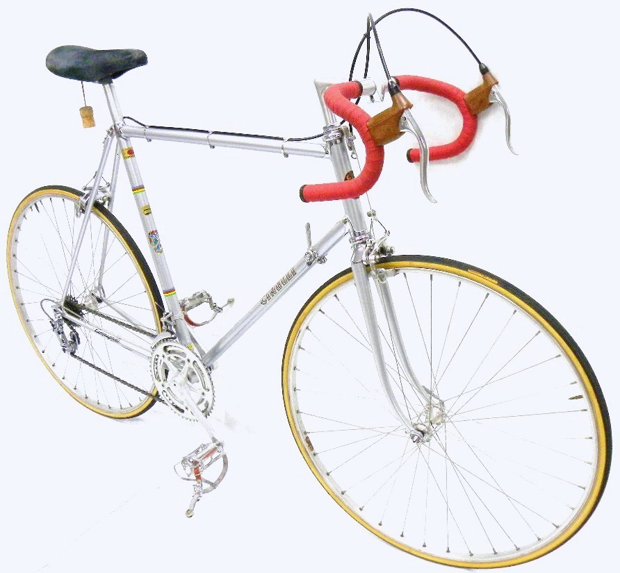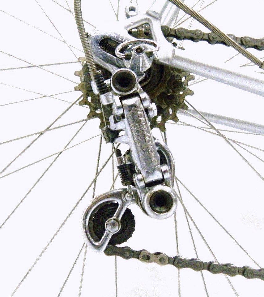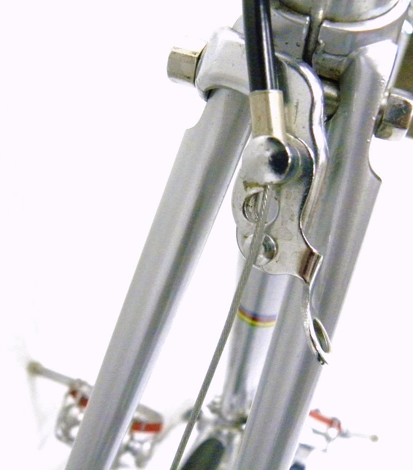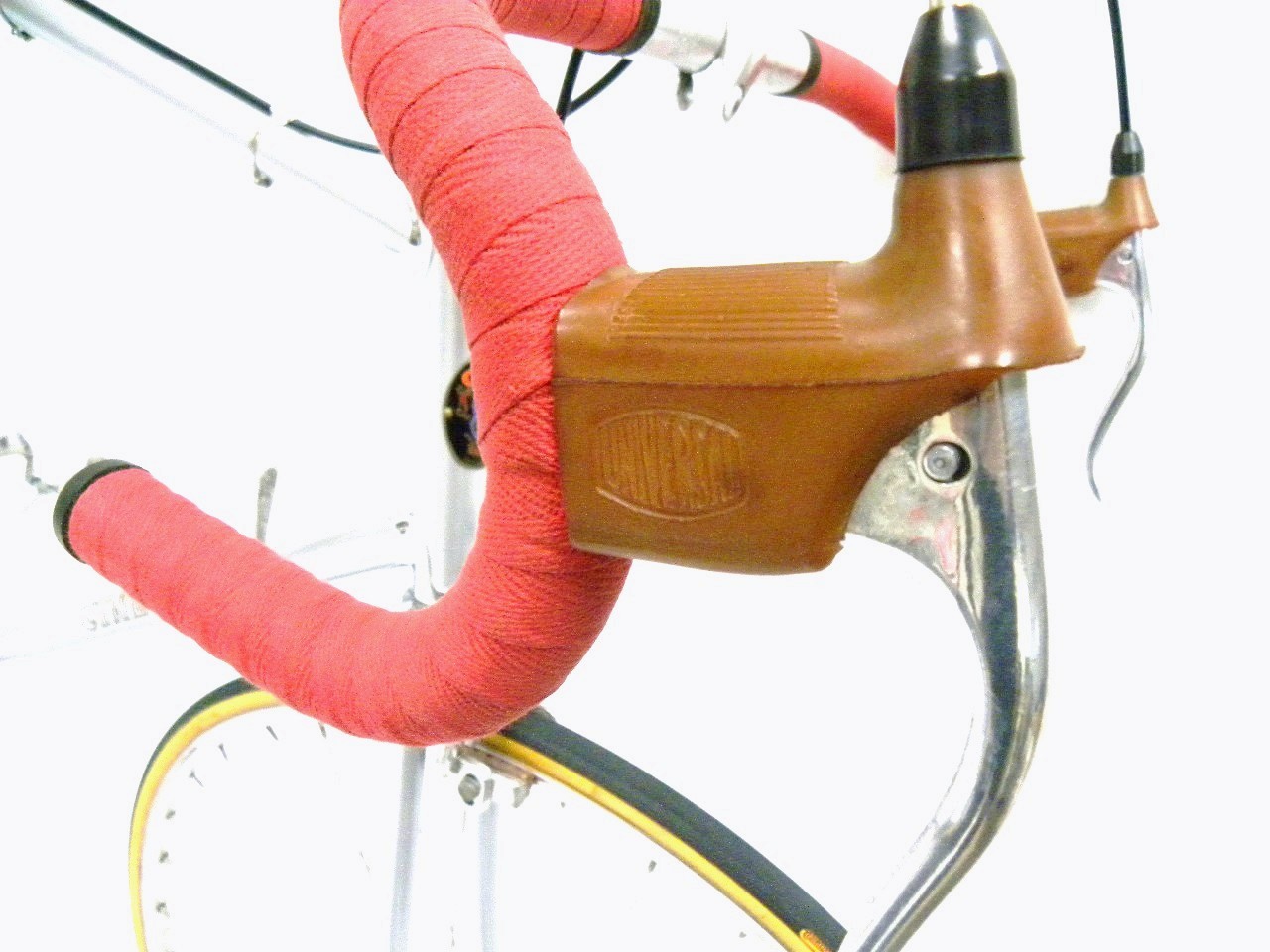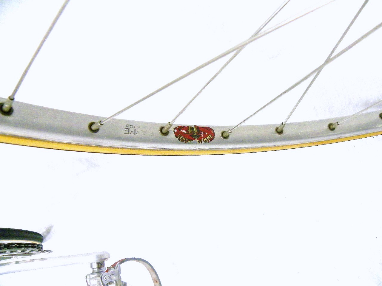 - The Story – Acquired from Stirling Peters. Brian Baylis repaint. Came complete but with some incorrect parts. I bought a complete bike just to get the brakes and levers and then I was still missing the rear hanger. Finally got a NOS one from Mike Barry of Bicycle Specialties in Ontario, Canada. I also had to buy 4 Fiamme rims to make up a good pair.