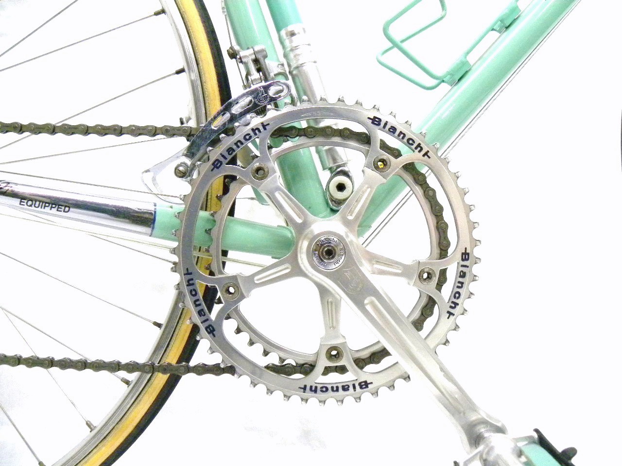 • The Bike – 1981 Bianchi Super Leggera in celeste color with complete Campagnolo pantographed Super Record Group.